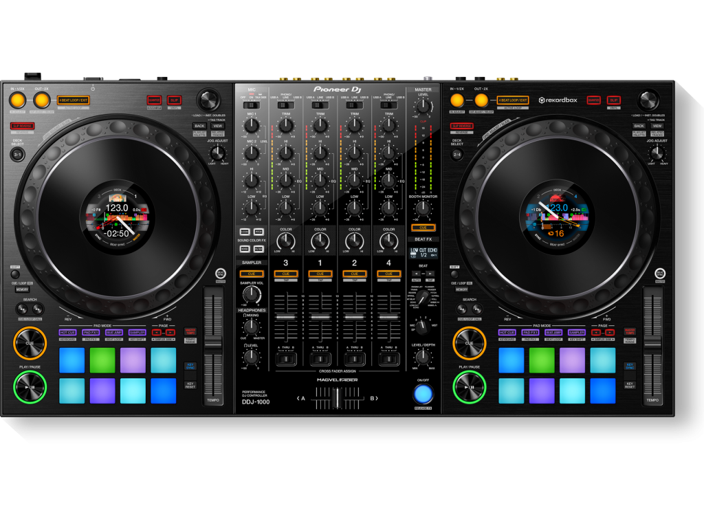 دی جی کنترلر Pioneer DDJ-1000 را می توان یکی از فوق العاده ترین و بهترین محصولات ارائه شده توسط کمپانی پایونیر برشمرد. این دستگاه با داشتن قابلیت هایی همچون 4 کانال اختصاصی ، کیفیت فوق العاده در جاگ ویل ها ، چدیمان حرفه ای مطابق با NXS2 ، وجود صفحه نمایش رنگی بر روی هر جاگ ویل ، سازگاری با REKORDBOX ، استفاده از BeatFX4 و 16 پرفورمنس پد انتخابی فوق العاده برای افرادی می باشد که به دنبال دستگاهی حرفه ای و کامل هستند.