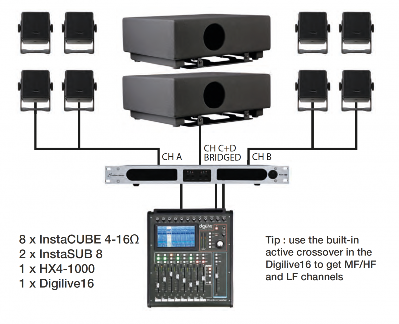 Insta Sub 8A قادر به تولید 800 وات توان پیک است. این توان بالا باعث میشود که این ساب ووفر بتواند صدای باس عمیق و پرقدرتی را در فضاهای بزرگ و کوچک تولید کند. بهویژه برای تقویت فرکانسهای پایین در سیستمهای PA، کنسرتها، استودیوهای ضبط و محیطهای مشابه، توان 800 وات بسیار کارآمد و موثر است.