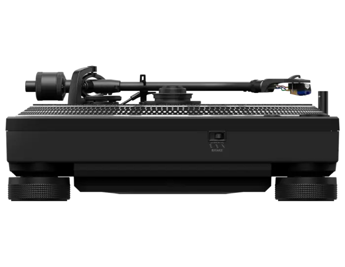 سرعت توقف قابل تنظیم: از سوئیچ جلوی دستگاه برای تنظیم مدت زمانی که پس از فشار دادن دکمه STOP، تورنتیبل متوقف می‌شود، استفاده کنید. حالت “Min” سریع است. حالت “Mid” از یک سرعت توقف سنتی استفاده می‌کند که برای دی‌جی‌ها آشنا است. و حالت “Max” سرعت توقف طولانی‌تری ایجاد می‌کند که به پایان تدریجی و جذاب یک ترک یا اجرا کمک می‌کند.